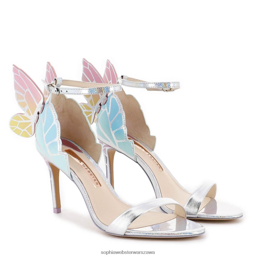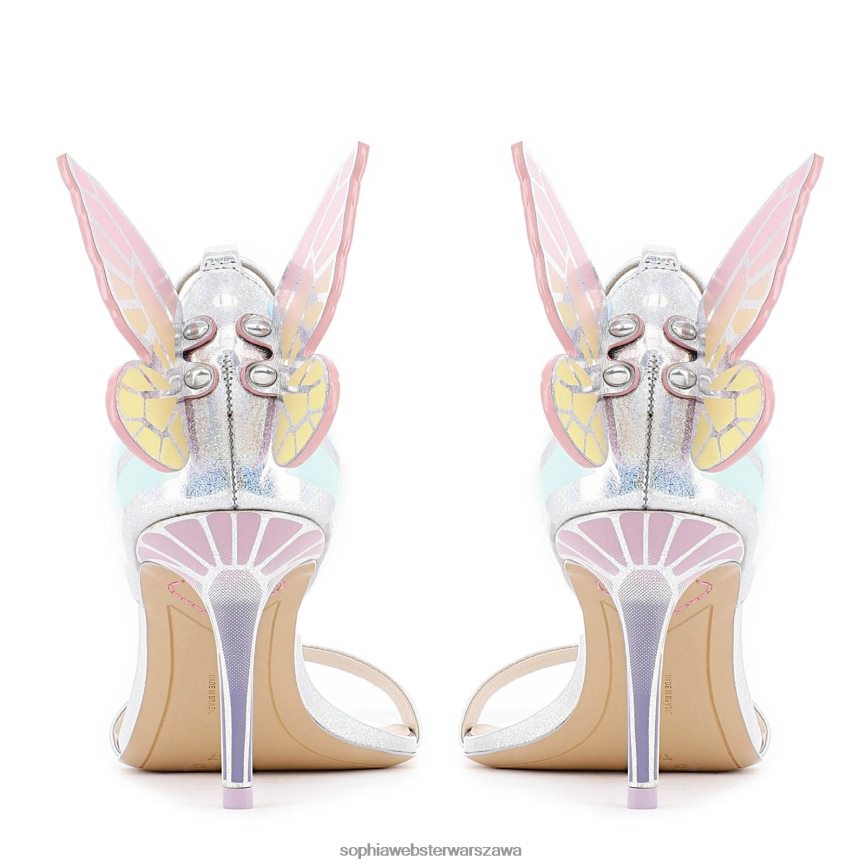 na super wygodnym 85-milimetrowym obcasie, nasza pastelowa chiara została w tym sezonie odnowiona w niebiańskiej srebrnej i pastelowej kolorystyce i wykończona sitodrukowym detalem w kształcie skrzydła motyla 3D, prostym paskiem na palcach i zapięciem na kostce.