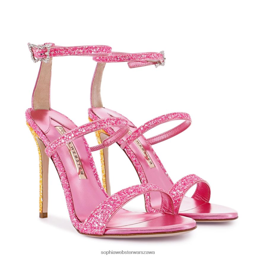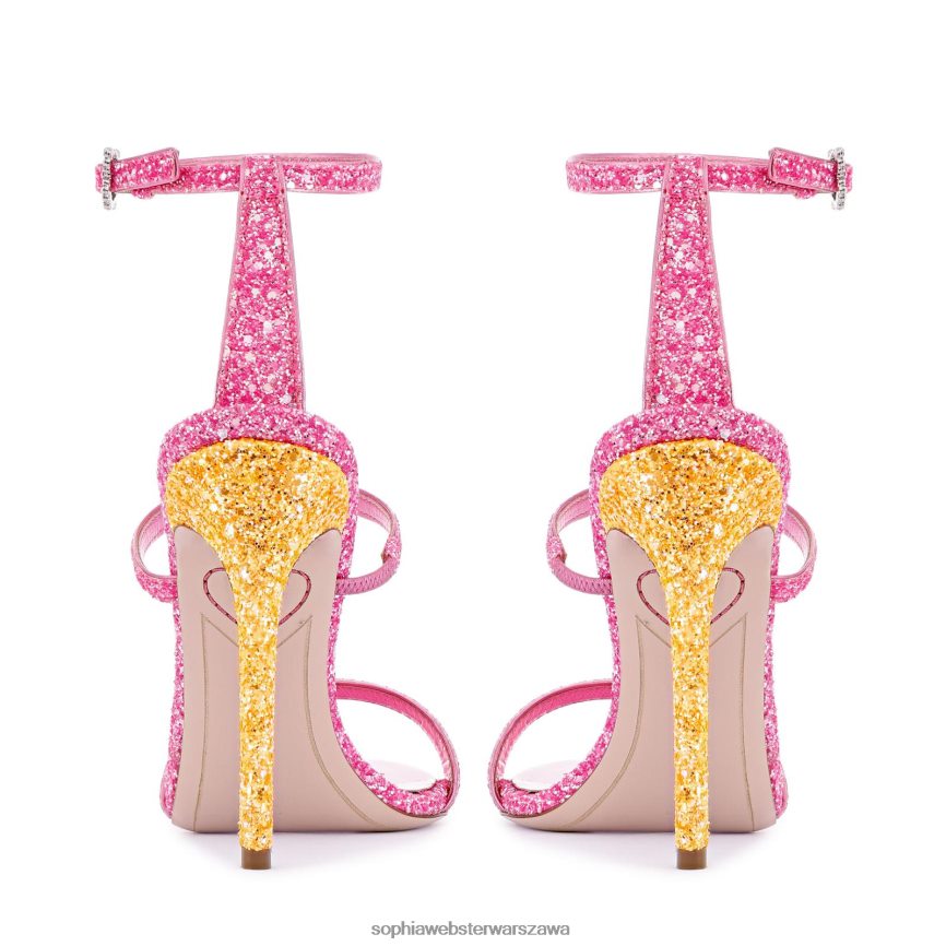 nasze charakterystyczne sandały zostały odnowione! przedstawiamy naszą nową sezonową kolorystykę różowego ponczu i błyszczącego kamienia słonecznego, wyjdź w dobrym stylu dzięki naszej najnowszej obsesji. wykończony kryształową klamrą w kształcie motyla, prostą cholewką z paskiem i kontrastowym, błyszczącym obcasem.