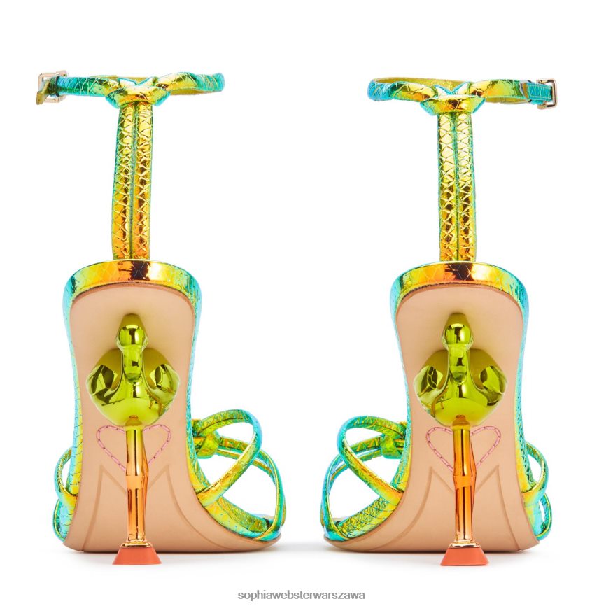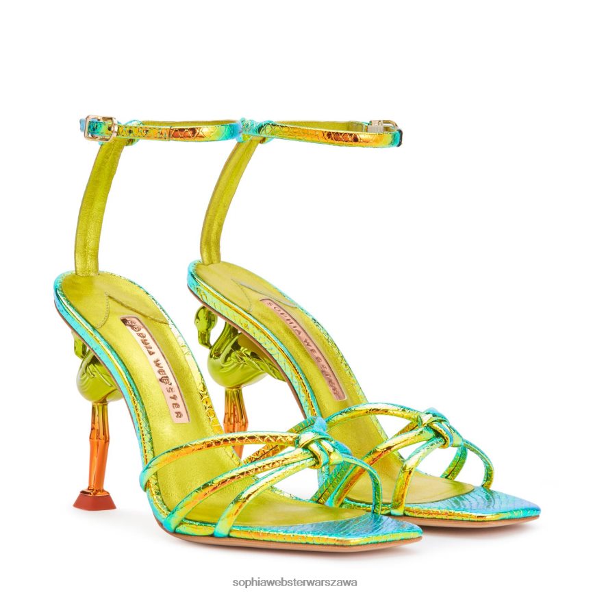 nasze wspaniałe sandały Flo Flamingo powracają, tym razem w odważnej cytrynowej kolorystyce! ta holograficzna skóra została ręcznie wytłoczona w celu uzyskania tekstury skóry węża i ma obcas w kształcie flaminga ombre oraz prostą cholewkę z paskami. załóż swoją z prostą sukienką halkową, aby uzyskać marzycielski letni wygląd.