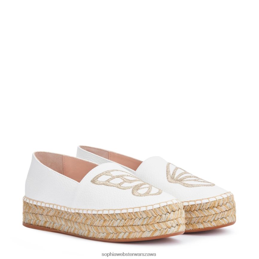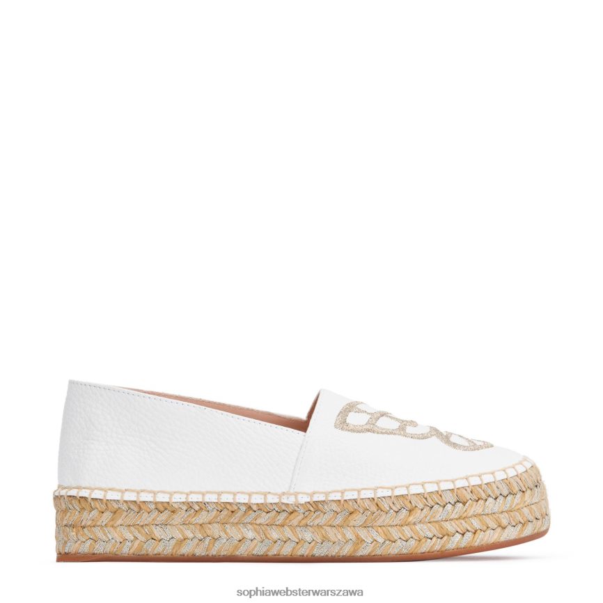 proste i stylowe, nasze espadryle na platformie powracają w świeżej, białej skórze. wykończone złotymi haftowanymi skrzydłami motyla na platformie 35 mm, ten styl został zaprojektowany z myślą o dokładnym dopasowaniu, z czasem skóra dopasuje się do stopy.