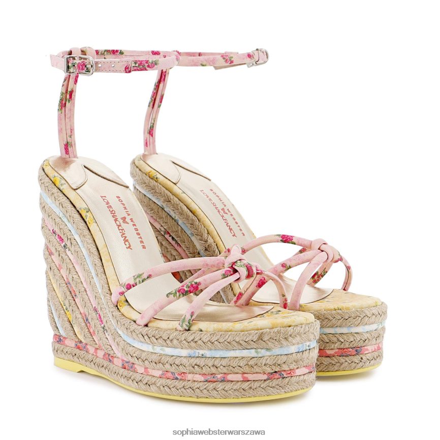 ekskluzywna kolekcja sophia webster x loveshackfancy jest już dostępna! niektóre z naszych najbardziej lubianych kolekcji archiwalnych powróciły w połączeniu z niestandardowymi nadrukami loveshackfancy. nasze klasyczne espadryle lucita zostały żartobliwie przeprojektowane w kolorystyce pozłacanej róży ogrodowej i bluszczu. z naprzemienną kwiecistą lamówką na klinie, skórzanymi paskami z nadrukiem i subtelną satynową kokardką z przodu. wyprodukowane w hiszpanii, te espadryle wkrótce staną się Twoim letnim niezbędnikiem.