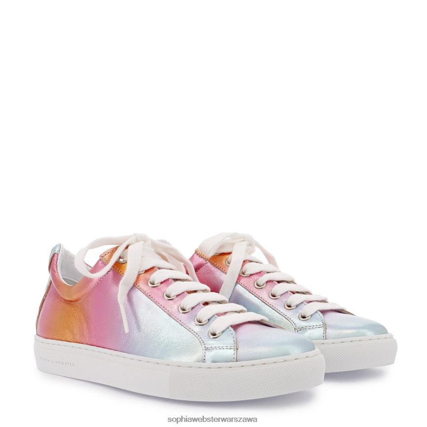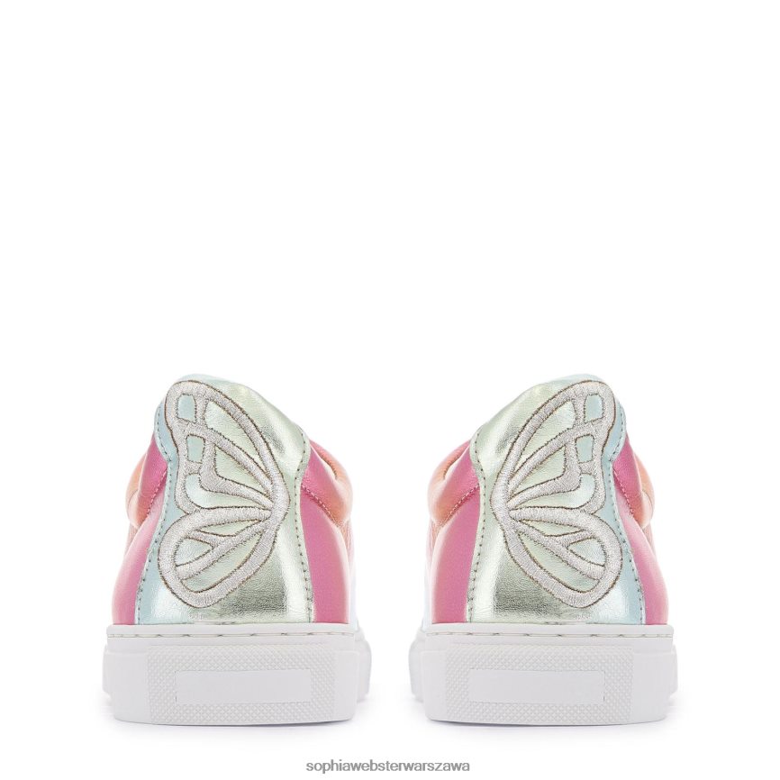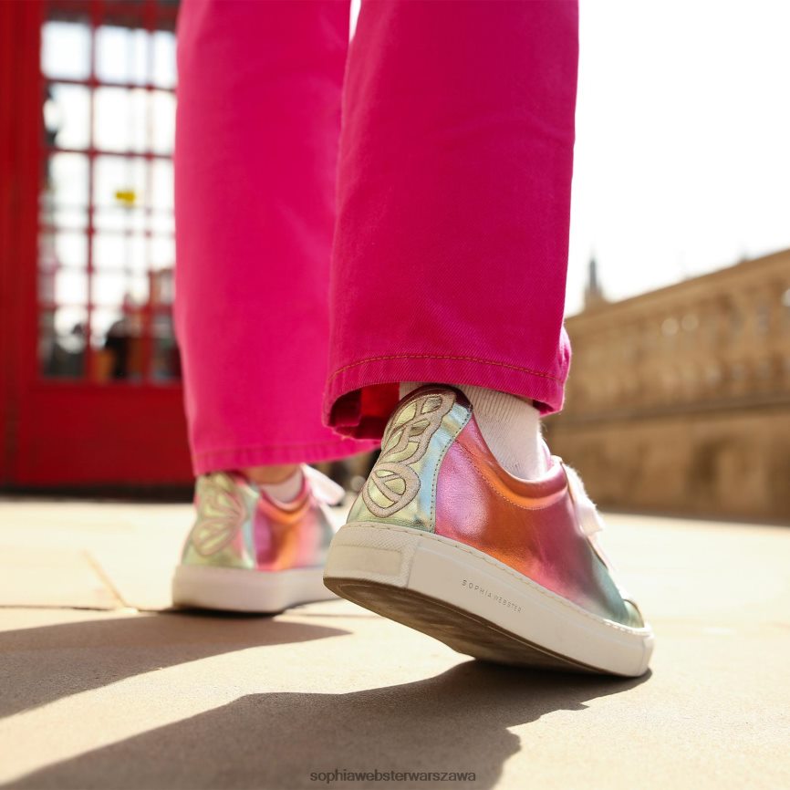 nasze klasyczne trampki motylkowe powracają w tym sezonie! podnieś swój codzienny wygląd dzięki tym tenisówkom z metalicznej tęczowej skóry, z wielobarwną powłoką zewnętrzną i wyhaftowanym motylem na pięcie. wykonane w hiszpanii te tenisówki są Twoim nowym dodatkiem od pracy do weekendu.